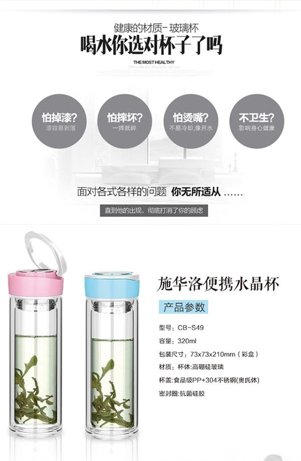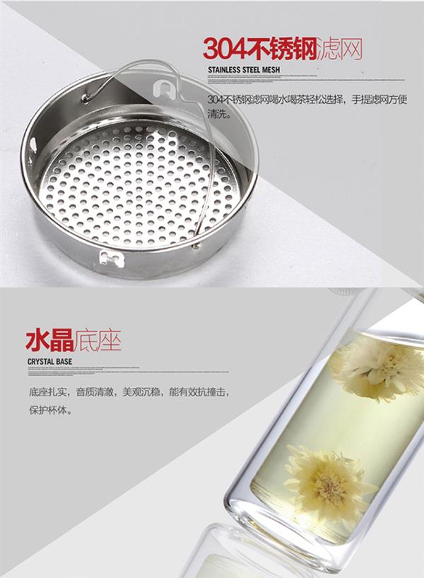 双层耐热高硼硅玻璃杯男女皮纹盖式泡茶水杯礼品